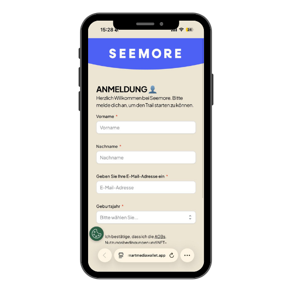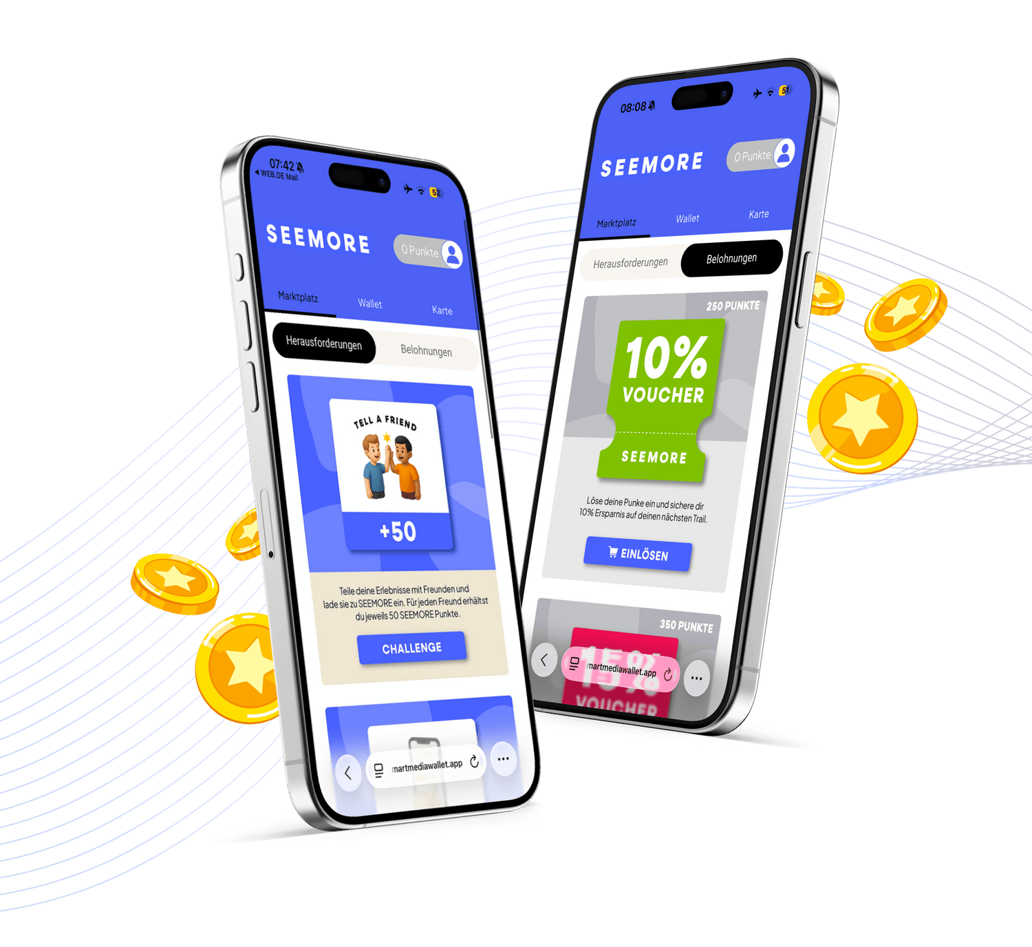 Zum Startpunkt begeben, im persönlichen SEEMORE Wallet anmelden und auf Trail zugreifen